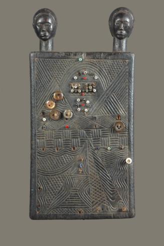 Provenance(Conte, Kinshasha, Zaire); acquired by Mohammed Kaba; acquired by Peter G. Gould and Robin M. Potter, Haddonfield, NJ; by gift 2011 to Allen Memorial Art Museum, Oberlin, OHThe keepers of the history of the Luba are members of the Mbudye society, whose sacred role was to keep the history from generation to generation so that the Luba heritage would be preserved. This sacred and living chronicle of the culture could also be referenced should a dispute arise based on descent.