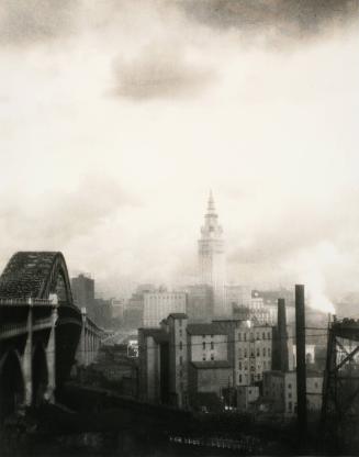 Not on viewA pioneering photojournalist, Bourke-White opened one of her first studios in Cleveland’s Terminal Tower, the second tallest building in the world at the time of its completion in 1927. Bourke-White first achieved recognition through her photography of Cleveland’s mills and factories, a fascination with industry that would continue throughout her career. Here, Bourke-White captures the Terminal Tower behind bridges, power lines, and smokestacks, presenting “the gem of Cleveland” in the context of the city’s booming industrial landscape.