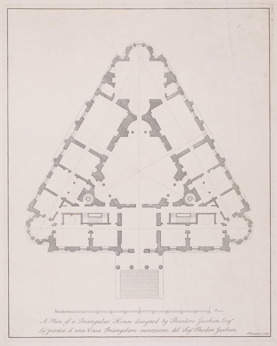 Floor Plan for a Triangular House Designed by Theodore Jacobsen