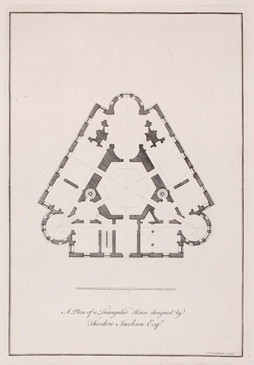 Floor Plan for a Triangular House Designed by Theodore Jacobsen