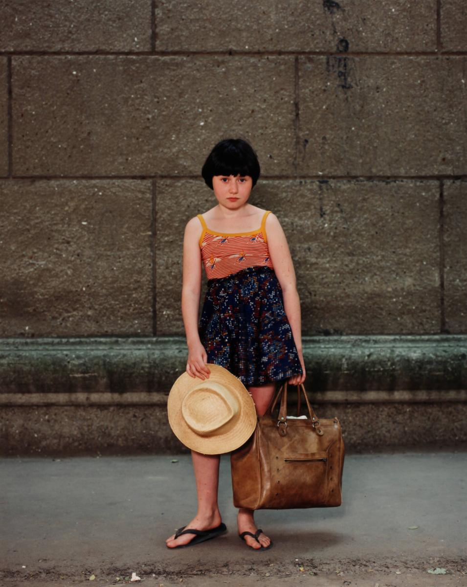 Not on viewOne of the leading portrait photographers of her generation, Dijkstra’s photographs of children are studies in the self-conscious experience of being photographed. Here a young girl appears on a generic street, holding everyday objects that nevertheless elicit speculation. She carries a sagging suitcase and hat that seem to belong to someone much older.