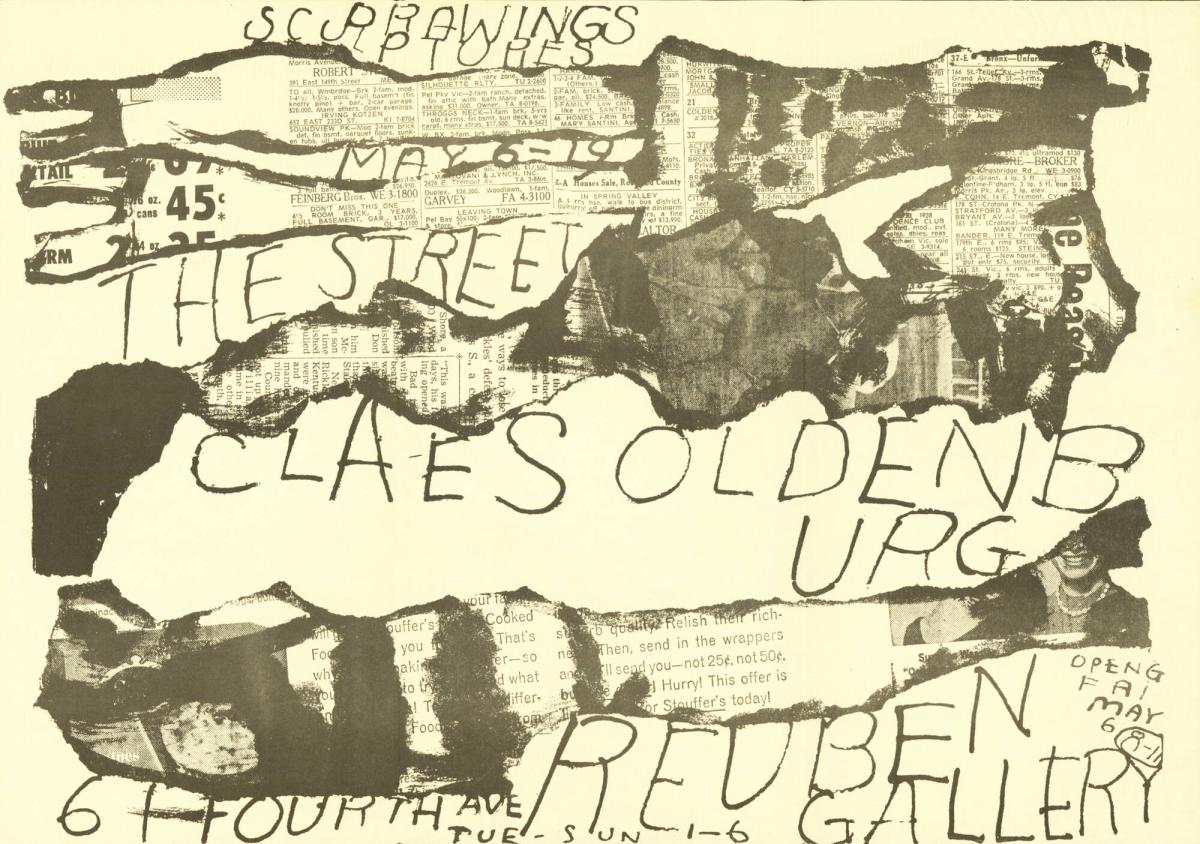 Exhibition announcement for Claes Oldenburg's "The Street" held at the Reuben Gallery, May 6-19, 1960