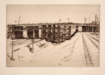 Kinsman Street Temporary Bridge, April 1929, from the Cleveland Union Terminal Series