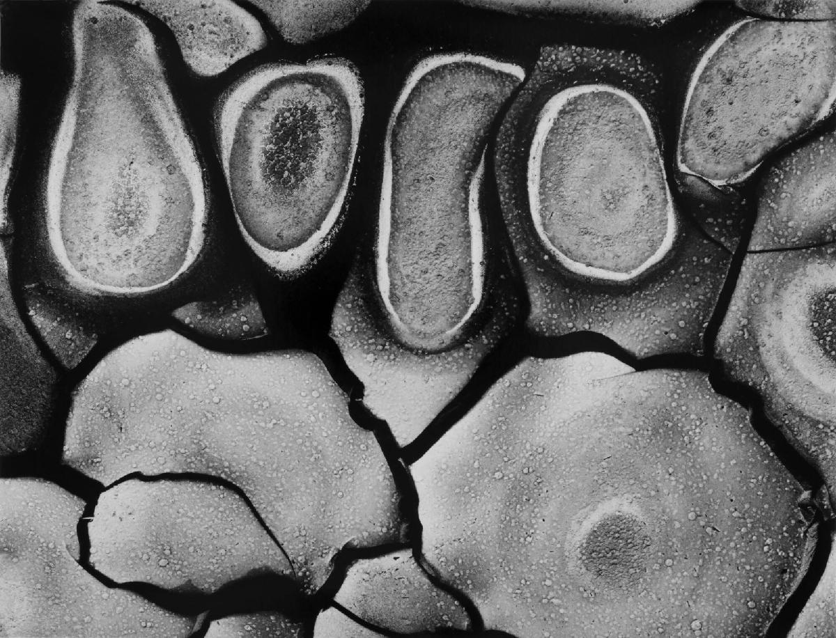Similar to his fascination with sweeping sand dunes, Weston likewise continuously turned his lens on the subject of cracked mud. Capturing a minute detail of the vast and dramatic landscape of Death Valley, the mud crack motif exemplifies Weston’s interest in extreme close-ups of the natural world.