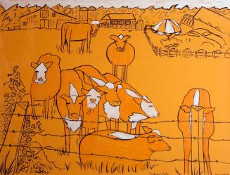 MediumInk, tempera, and pencil on orange silkscreen paper
