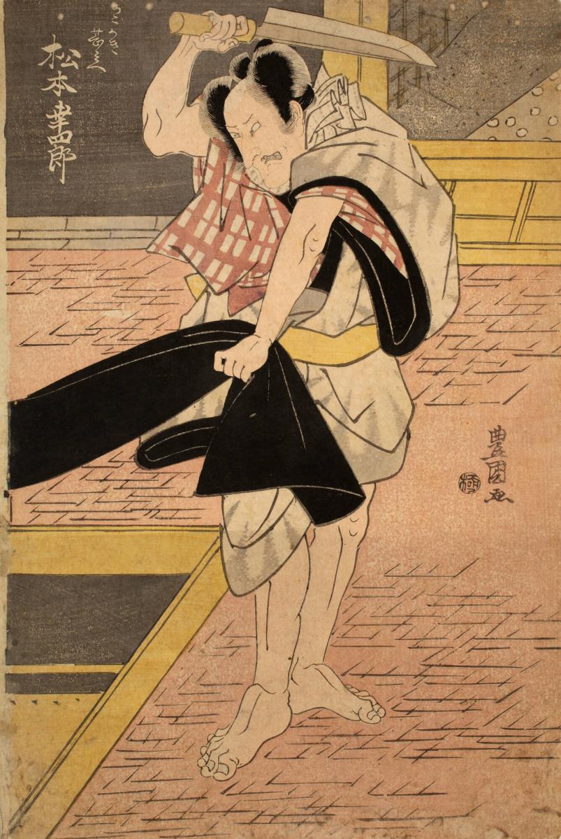 Actor Matsumoto Kōshirō in a Kabuki Role, Cutting Cloth