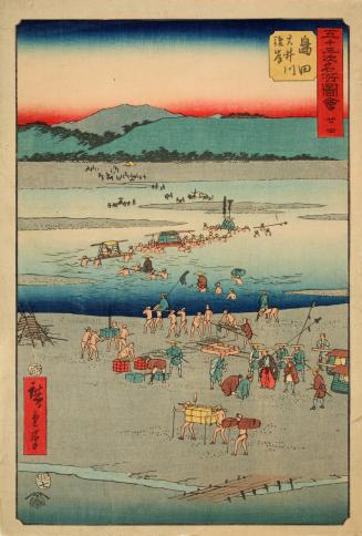 Shimada: The Suruga Side of the Ôi River (Shimada, Ôigawa Sungan), no. 24 from the series Famous Sights of the Fifty-three stations (Gojûsan tsugi meisho zue), also known as the vertical Tôkaidô