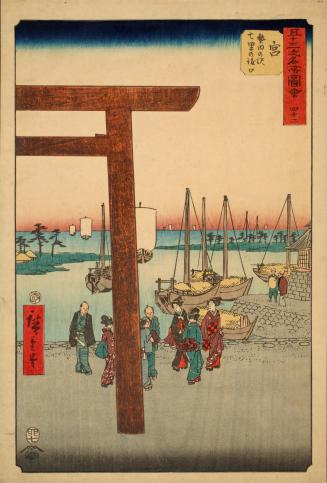 Miya: Atsuta Terminal of the Shichiri Ferry (Miya: Atsuta no eki Shichiri no Watashiguchi), from the series Famous Sights of the Fifty-three Stations (Gojûsan tsugi meisho zue), also known as the vertical Tôkaidô