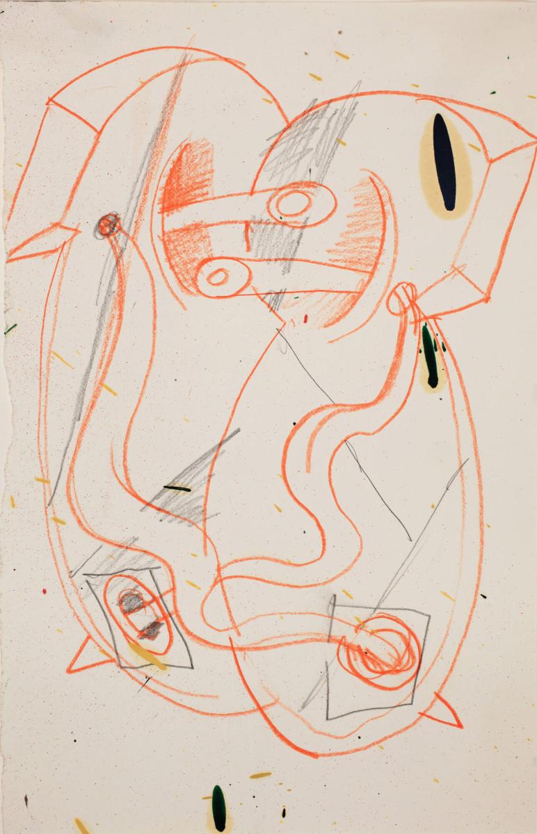 Not on viewThis vibrant work is a preparatory drawing for a large shaped canvas by the artist, of the same year, which was purchased by the Allen in 1999. The dynamismof ElizabethMurray’s thought process comes through in her working and reworking of the sheet, as she revises the composition and creates connections between its elements.