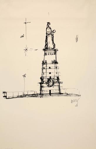 Sketch for Installation of the Colossal Queen Catherine Statue to be sited on the Queen Side of East River NYC: Tower #1 75+44