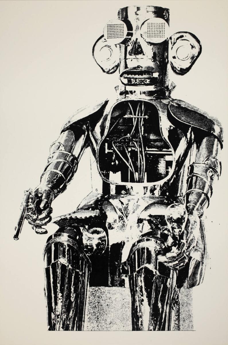 Not on viewEduardo Paolozzi, a member of the Independent Group, was known for his Pop aesthetic that juxtaposed found images from science fiction and American pulp magazines. Moonstrips Empire News, a print series with no predetermined order, encourages viewers to arrange and rearrange the pages as active editors of the suite. General Dynamic F.U.N., the second volume, combines geometric abstraction, iconic emblems and computerized diagrams into a dizzying array of visual information reminiscent of the mass media.