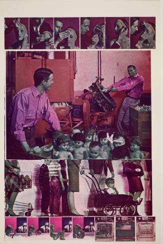 Not on viewEduardo Paolozzi, a member of the Independent Group, was known for his Pop aesthetic that juxtaposed found images from science fiction and American pulp magazines. Moonstrips Empire News, a print series with no predetermined order, encourages viewers to arrange and rearrange the pages as active editors of the suite. General Dynamic F.U.N., the second volume, combines geometric abstraction, iconic emblems and computerized diagrams into a dizzying array of visual information reminiscent of the mass media.