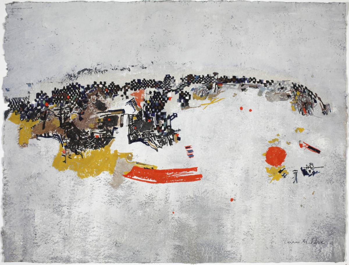 Maria Helena Vieira da Silva, the daughter of a diplomat, traveled widely in her youth; she moved to Paris in 1928 from her native Portugal and her works display the influence of Cubism and Futurism that she encountered in France. Later she moved with her Hungarian husband, the artist Árpád Szenes, to Brazil. After World War II she returned to Paris, continuing to paint and draw in a complex, abstract style while also creating prints, ceramics, and designs for tapestries and stained glass.