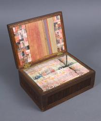 MediumWooden box, brass hinges, mirror, plaster (?) blocks, cloth, balsa wood, paints, glue, and bubble wrap