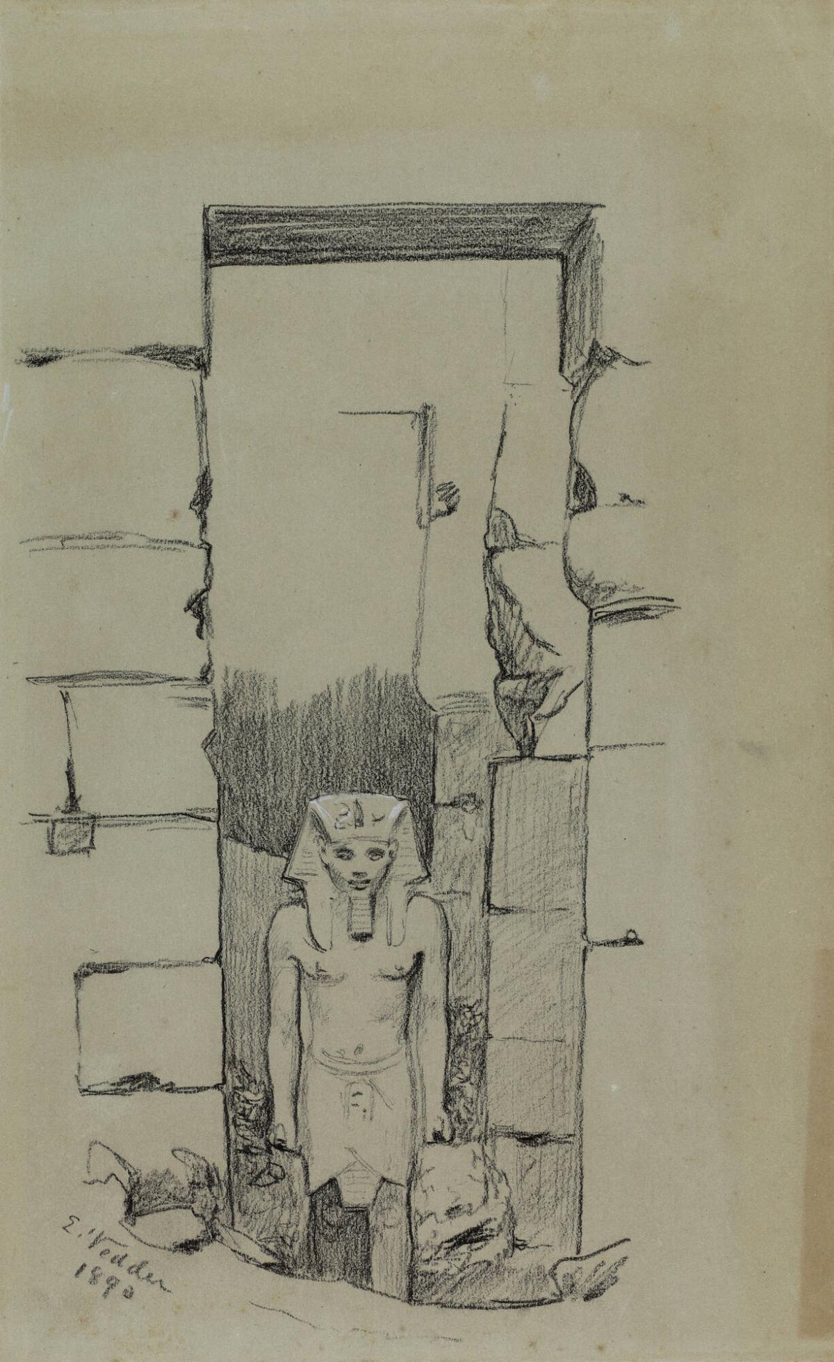 MediumBlack chalk with traces of silver-white hightlights on blue paper