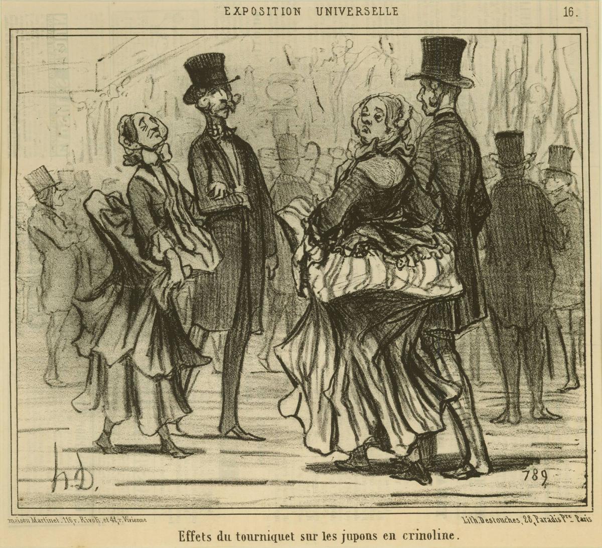 Effets du tourniquet sur les jupons en crinoline (The effect of turnstiles on crinoline petticoats), from the series L'Exposition universelle
