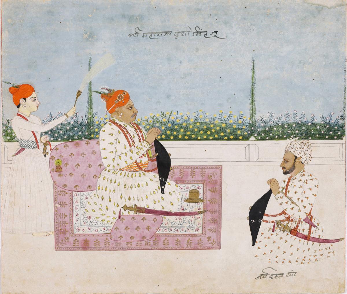 Portraiture was an important type of painting at the Rajput courts, recording key people and events. Often, a painting like this was commissioned by the ruler as a gift to the other person in the painting and a symbol of their relationship. Research on the specific subject of this painting is ongoing.