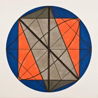 Not on viewSince the mid-1960s, Robert Mangold has created works that display a rigorous use of geometric forms and broad swaths of colored, abstract shapes. In 1990, at the suggestion of Oberlin College professor of art John Pearson, Mangold began to create designs for a stained glass window for the College's Finney Chapel, completing the vision of architect Cass Gilbert-who also designed the AMAM-for one of the most prominent buildings on Oberlin's campus. Finney Chapel was finished in 1908, but the large round window facing Tappan Square had been left empty of decoration. Gilbert's intent was that its colors be "rich and impressive .!.!. deep blues and full reds and yellows," but a disagreement between the architect and the donor led to the project's postponement.