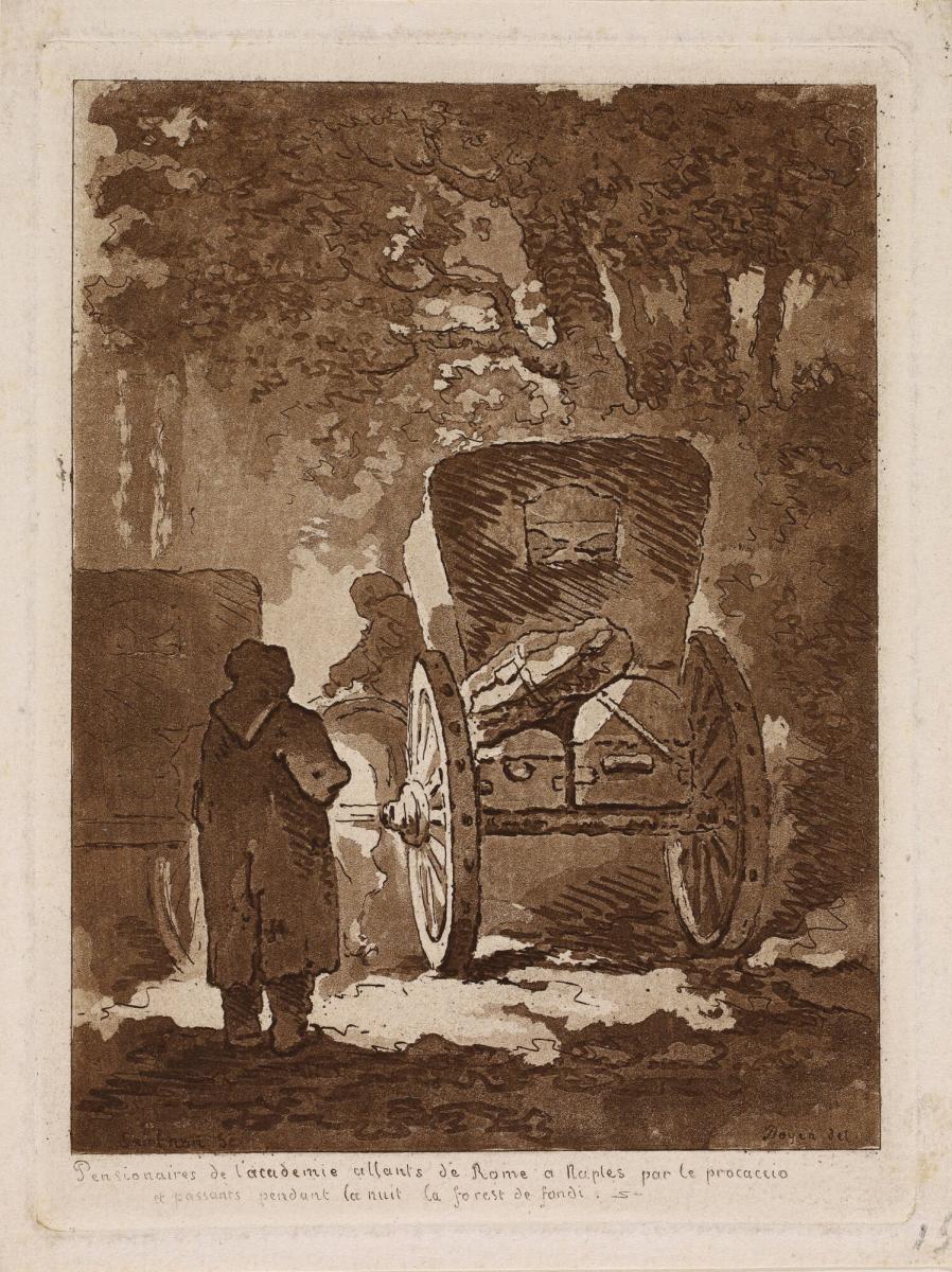 Pensionaires de l'academie allants de Rome à Naples par le procaccio et passants pendant la nuit la forest de fondi