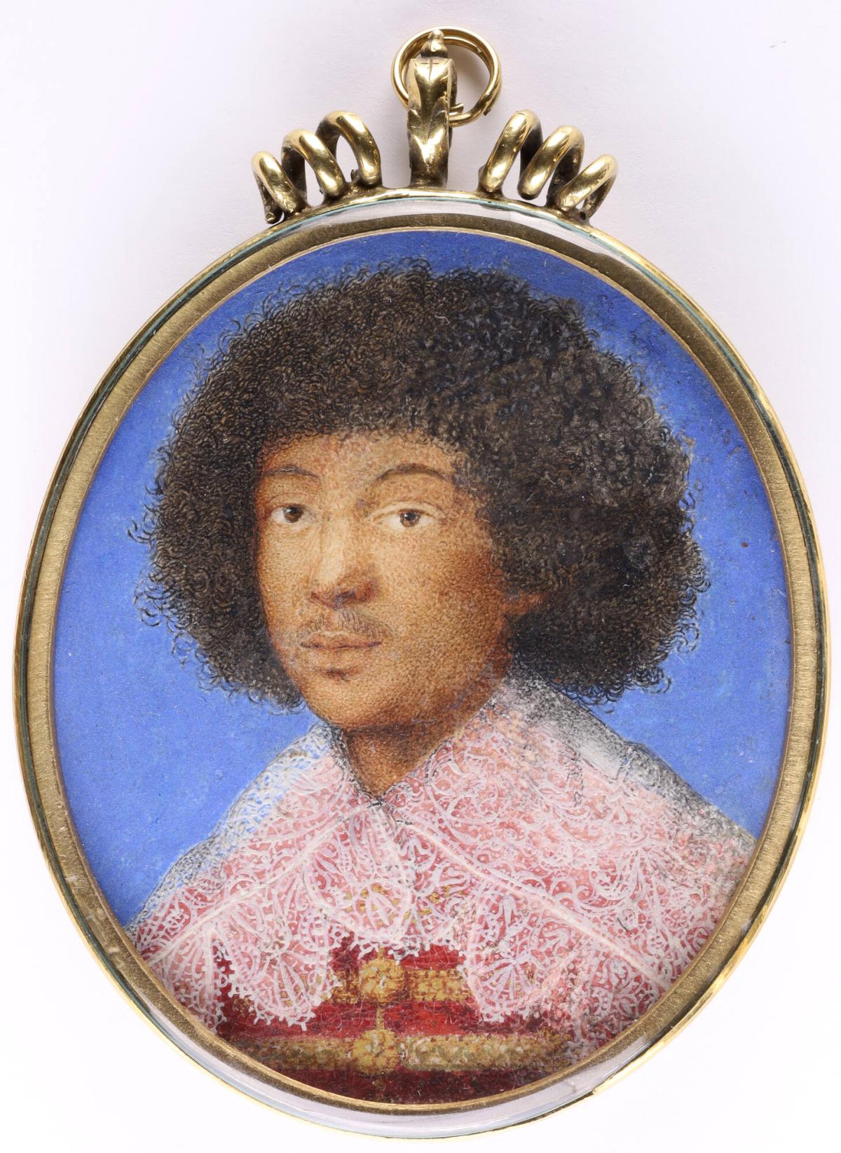 Giovanna Garzoni made the work in 1635, when she met Christ at the court of the Duke of Savoy in Turin. Her portrait is striking for its sympathetic and individualized portrayal at a time when most European images of Africans reverted to stereotypes. Christ is clothed in fashionable European dress, with his hair grown out to match the style in Turin.