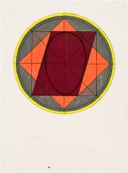 Not on viewSince the mid-1960s, Robert Mangold has created works that display a rigorous use of geometric forms and broad swaths of colored, abstract shapes. In 1990, at the suggestion of Oberlin College professor of art John Pearson, Mangold began to create designs for a stained glass window for the College's Finney Chapel, completing the vision of architect Cass Gilbert-who also designed the AMAM-for one of the most prominent buildings on Oberlin's campus. Finney Chapel was finished in 1908, but the large round window facing Tappan Square had been left empty of decoration. Gilbert's intent was that its colors be "rich and impressive .!.!. deep blues and full reds and yellows," but a disagreement between the architect and the donor led to the project's postponement.