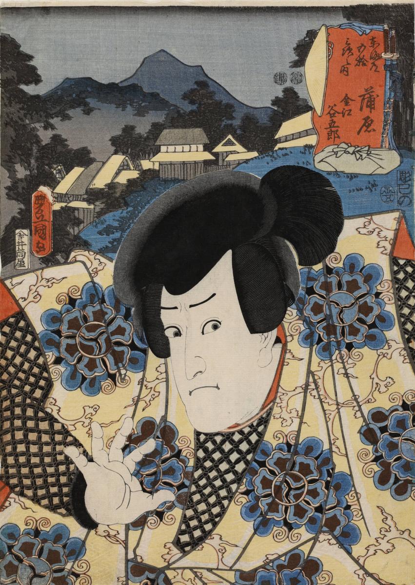 Kanbara: Ichikawa Kuz¬O Ii as Kanae Tanigoro, from the series Fifty-three Stations of the Tōkaidō Road (Tōkaidō gojūsan tsugi no uchi)