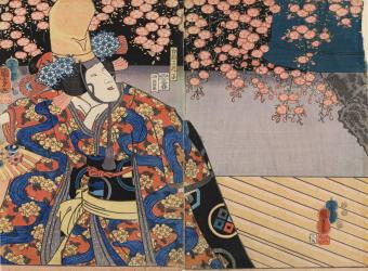 Bando Shuka as the Shirabyoshi Hanako, with Seki Sanjuro and Arashi Kichisaburo as the priests Kongara-bo and Seitaka-bo