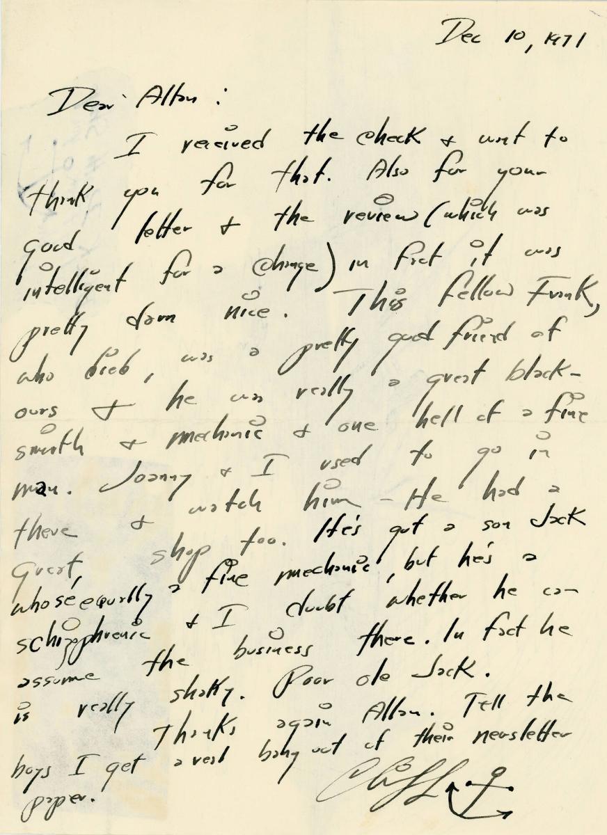 Letter and Envelope from H.C. Westermann to Allan Frumkin (Black Death Ship)