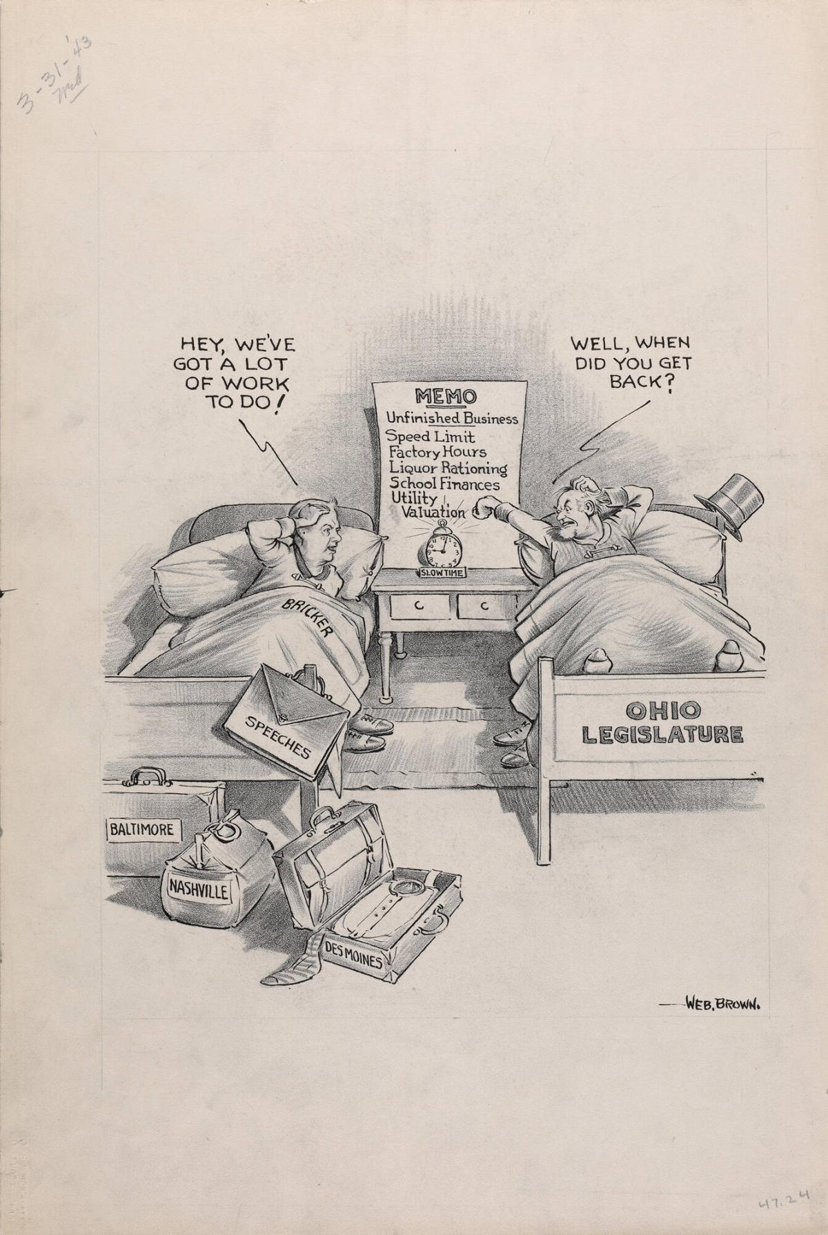 Governor Bricker, drawing for an Akron Beacon Journal cartoon