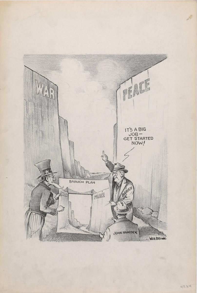 Baruch Plan, drawing for an Akron Beacon Journal cartoon