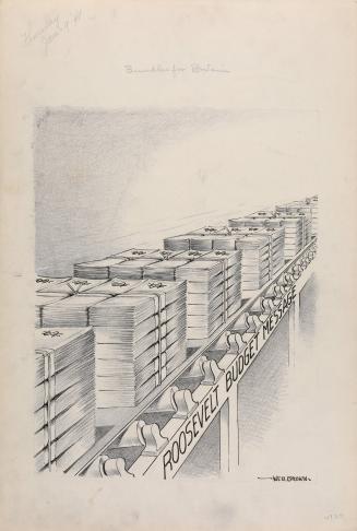 Bundles for Britain, drawing for an Akron Beacon Journal cartoon