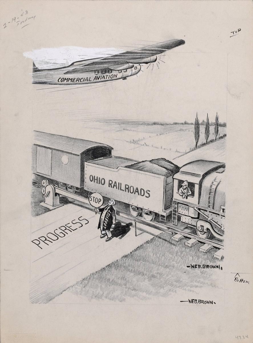 Commercial Aviation, drawing for an Akron Beacon Journal cartoon