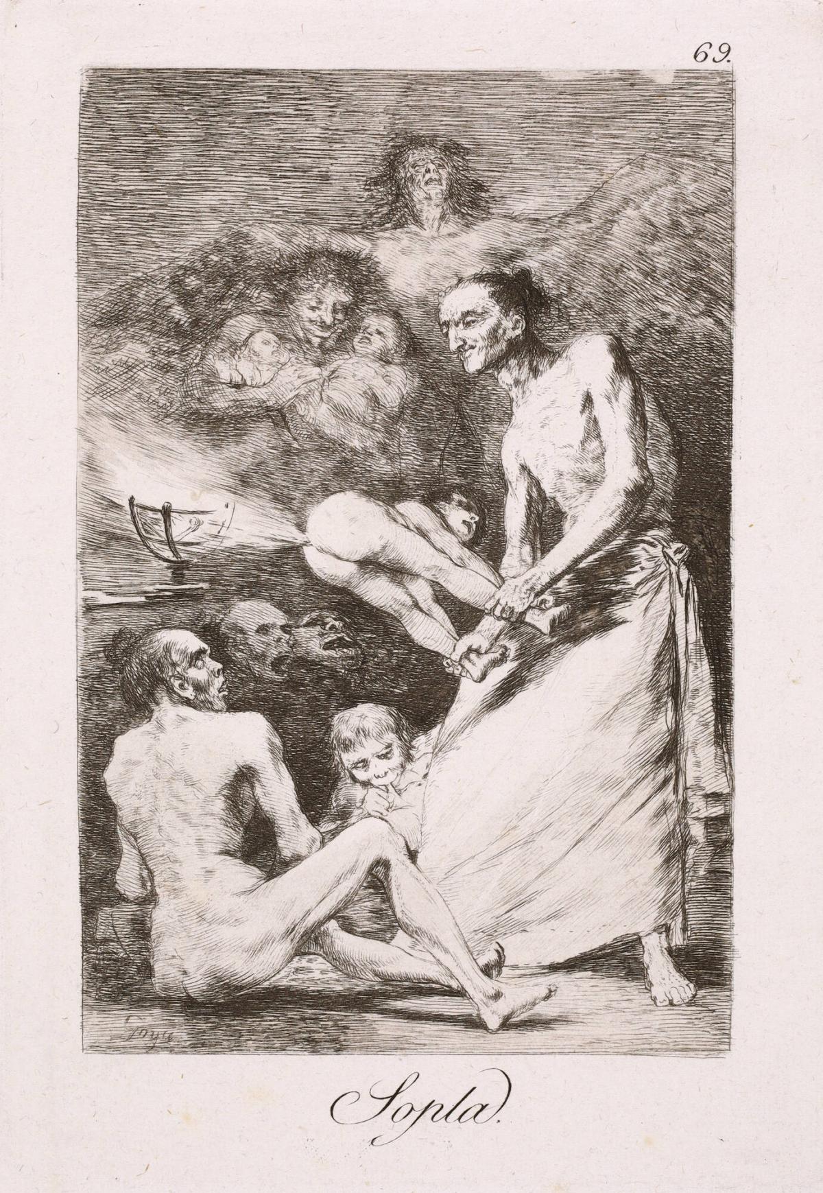 Sopla (Blow), plate 69 from the first edition of Los Caprichos (Madrid, 1799)
