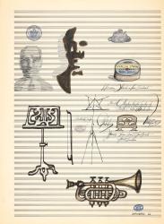 MediumInk, watercolor, colored pencil, and rubber stamp on Passantino Brand sheet music paper