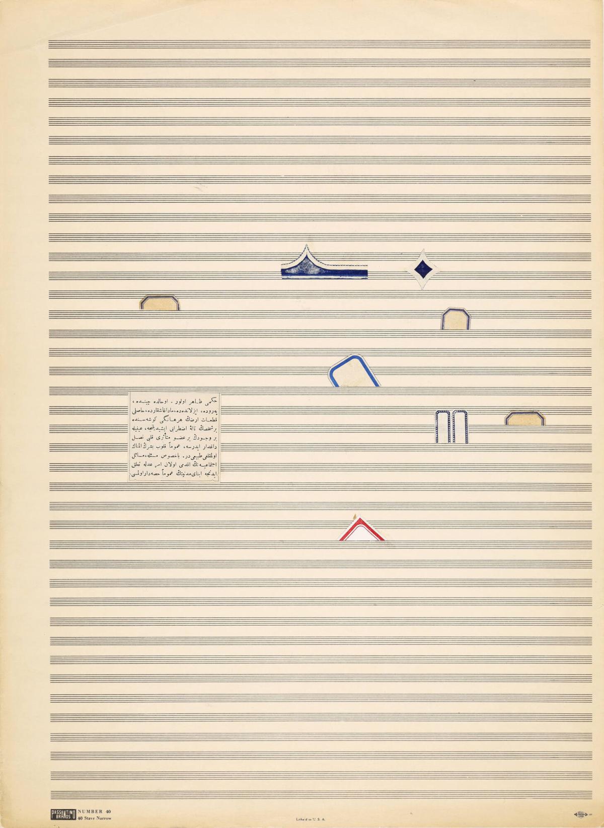 MediumPaper labels, rubber stamp, attached paper of Arabic text on Passantino Brands sheet music paper