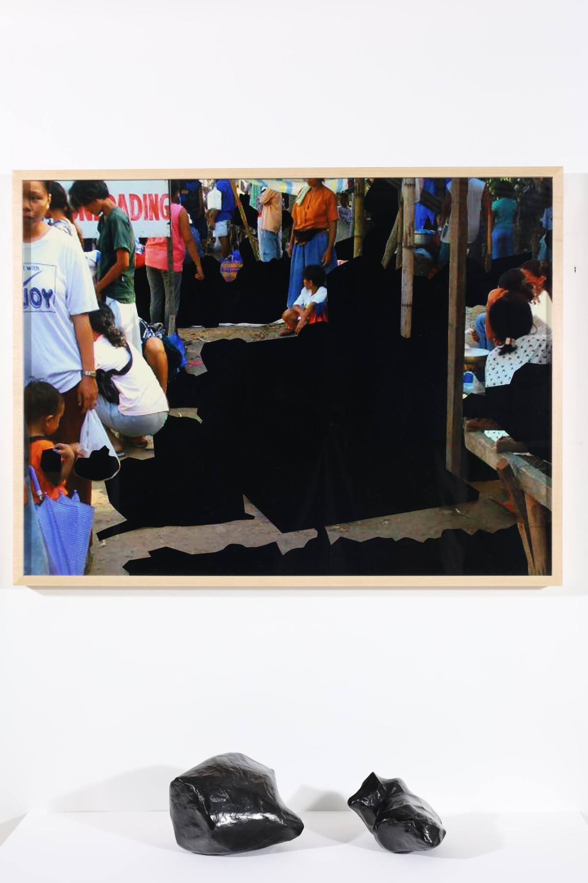 MediumFuji light jet print and two objects wrapped covered in black papier-mâché