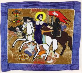 Not on viewHaitian women working in clothing factories in Port-au-Prince since the 1960s have made Beaded Vodou flags, referred to in Haitian Creole as dwapo. They collected extra beads and sequins used in the production of high-end dresses destined for French buyers and began using them to decorate the flags. As distinct from dwapo made for over a century by men for ceremonial purposes, these works were specifically made for the art market.