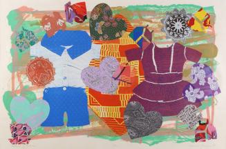 Not on viewSchapiro was a pioneer of feminist art in the early 1970s—co-founding the Feminist Art Program at the California Institute of the Arts in 1971. She was also a central figure in the Pattern and Decoration movement. This collage—or “femmage,” as she called it—exemplifies Schapiro’s revival of craft forms long disparaged as feminine and decorative. She commented, “I wanted to validate the traditional activities of women, to connect myself to the unknown woman artist who... made quilts, who had done the invisible ‘women’s work’ of Civilization.”