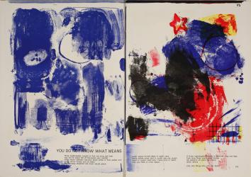 Not on viewA leading modernist painter and assemblage artist, Rauschenberg was committed to environmentalism throughout his life, from his design of the first-ever Earth Day poster to his foundation’s commitment to environmental causes. This print is a leaf from a portfolio of poems by Walasse Ting, a Chinese immigrant who merged Eastern and Western influences in his writing and paired them with silkscreen illustrations from some of the most famous artists of his time. Rauschenberg’s pairing of water towers, stars, circles, grids, and gestural swathes of color, captures the sense of urgency expressed in the first lines of Ting’s poem: “three nightingales caught in fish net sing not hear / sea full of weed full of thousand year rainfall…”