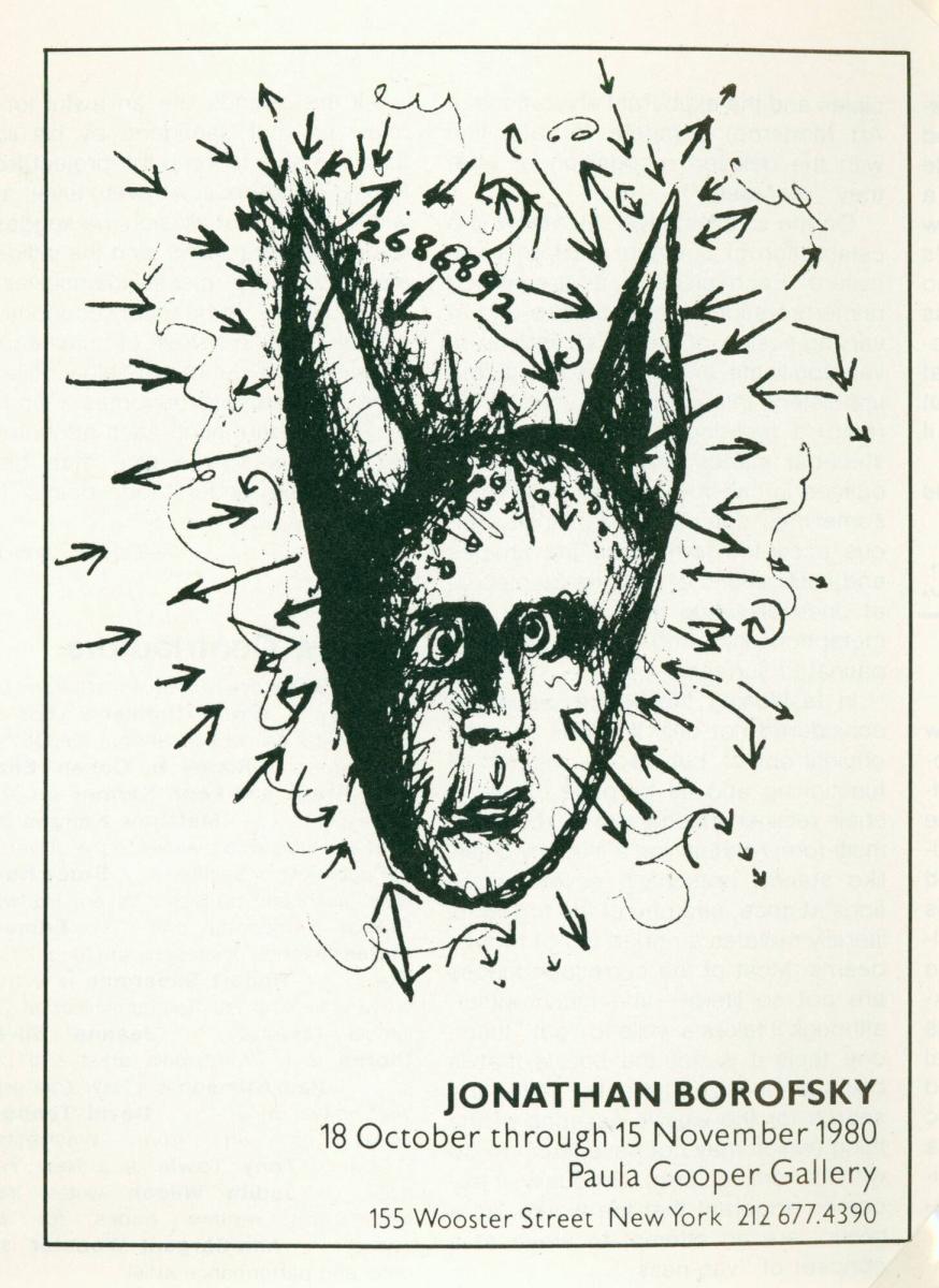 Exhibition Announcement for Jonathan Borofsky, October 18 - November 15, 1980, Paula Cooper Gallery
