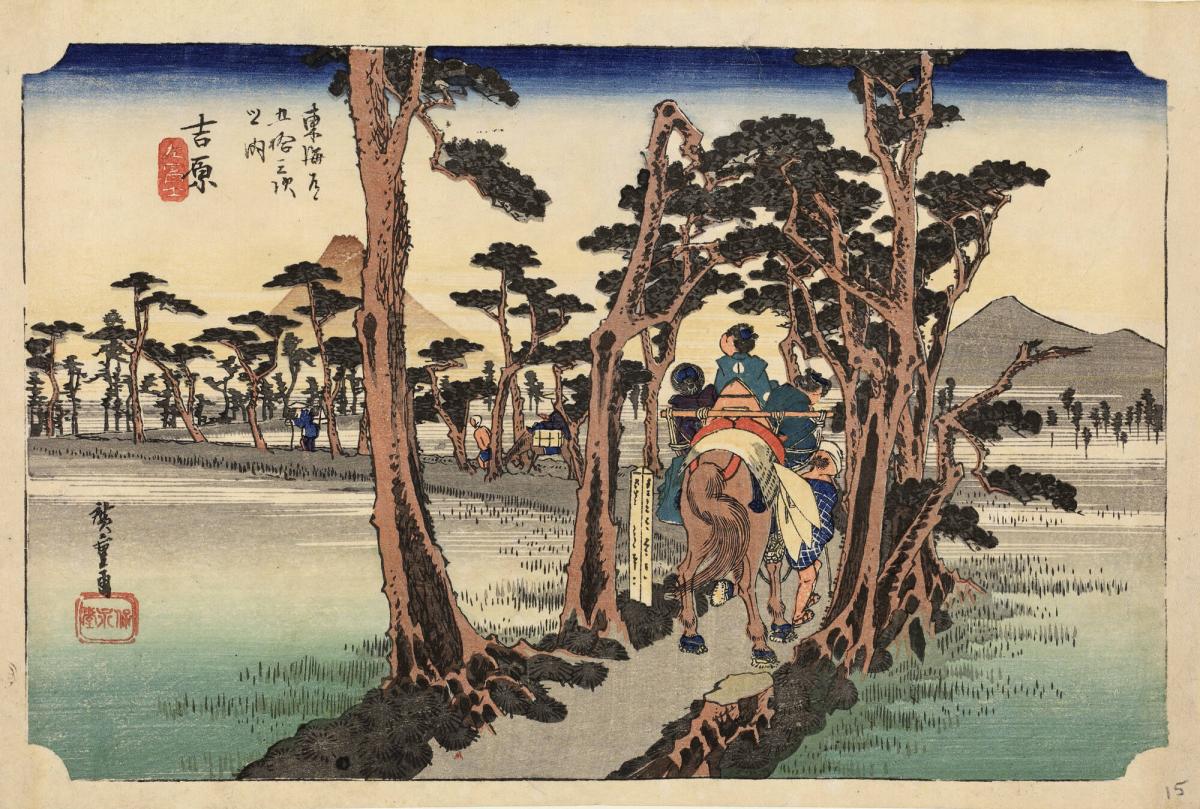 Fuji at the Left near Yoshiwara, no. 15 from the series Fifty-three Stations of the Tōkaidō
