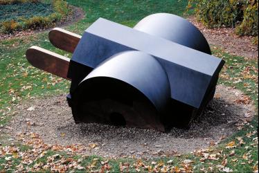On viewClaes Oldenburg's first commissioned permanent outdoor sculpture, Giant Three-Way Plug, comprises a 3.5-ton Cor-Ten steel body with polished bronze prongs. Fabricated in an edition of three at the Lippincott factory in North Haven, Connecticut, the subject was chosen from several different models (including a soft monumental ice pack) the artist presented after a series of visits to Oberlin. The sculpture was commissioned by the AMAM in January 1969, installed on August 10, 1970, and dedicated on September 14 of that year. The two other editioned examples were executed later and are in the collections of the Saint Louis Art Museum and the Philadelphia Museum of Art.