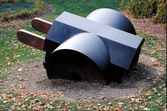 ProvenanceClaes Oldenburg, New York; purchased 1970 by Allen Memorial Art Museum, Oberlin, OHIn January 1963, Oldenburg participated -along with Joan Mitchell and Robert Rauschenberg-in the Three Young Americans exhibition at the museum. Ellen Johnson remarked in the 1963 AMAM Bulletin that Oldenburg's current work was more sculpture than painting, with a new interest in composing volumes. This exhibition and Oberlin's ongoing friendship with Oldenburg forged the way for the museum to work with the artist again in the late 1960s to commission a monumental sculpture. Plug developed from a concept that Oldenburg had already produced in different versions, notably hard and soft plugs suspended from above, with prongs pointing down. Much larger in scale, placed directly on the ground, and partly buried, Oberlin's Plug continues to engage powerfully the environment that surrounds it. Johnson described Oberlin as a place where people are intrigued and engaged with the sculpture and "where everyone accepts that it is a serious work of art, which began when a major sculptor looked at a little twenty-five cent plug that the rest of us take for granted."