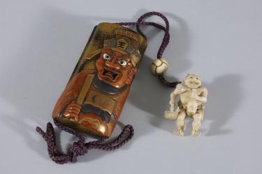 Four-Case Inro with Figure of Emma-o, the King of Hell