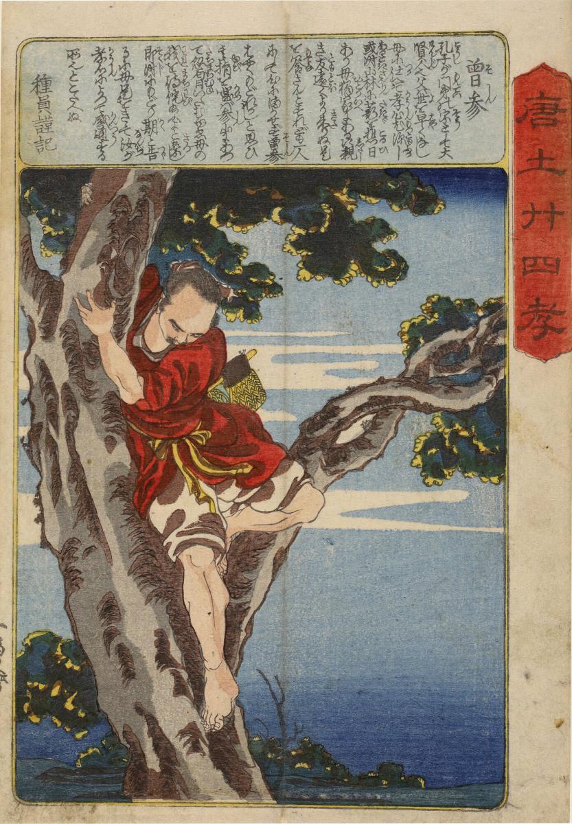 Zeng Shen (Sōshin) Climbing Down from a Tree, from the series The Twenty-four Chinese Paragons of Filial Piety