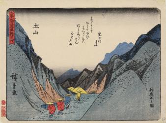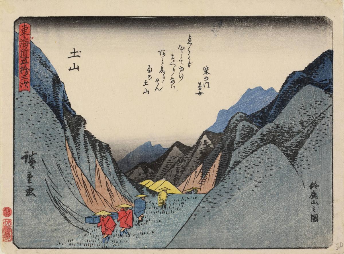 Rain at Tsuchiyama, with a Poem by Shibanoto Kusame, no. 50 from the series The Fifty-three Stations of the Tōkaidō