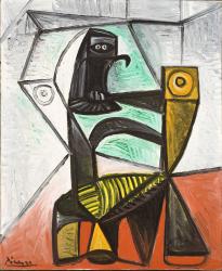 Not on viewThis important painting was made in the wake of the Second World War, at a time when Pablo Picasso's works were turning from pessimistic to optimistic themes. Although in 1943-44 he painted a number of still lifes with skulls, Picasso moved to Antibes with Françoise Gilot in the summer of 1946 and began a new series in which animals and birds, as well as the ambience of the Mediterranean, marked a new moment of happiness in his work. The photographer Michael Sima had given him a small live owl as a gift-the bird was both the symbol of Antibes and of the goddess Athena-and Picasso proceeded to paint it in a number of works. The AMAM's painting shows the owl perched on a caned and wooden chair.