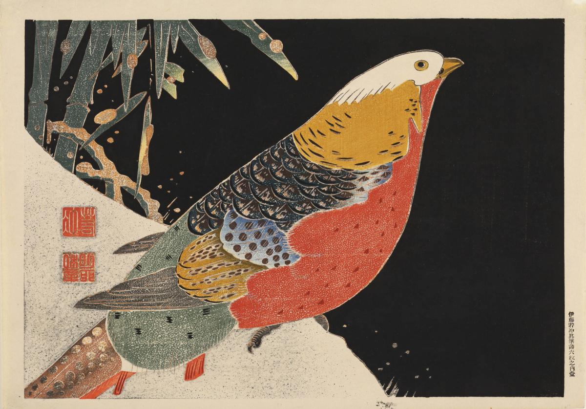 Copper Pheasant in Snow, no. 1 from the series Six Genuine Pictures by Ito Jakuchu