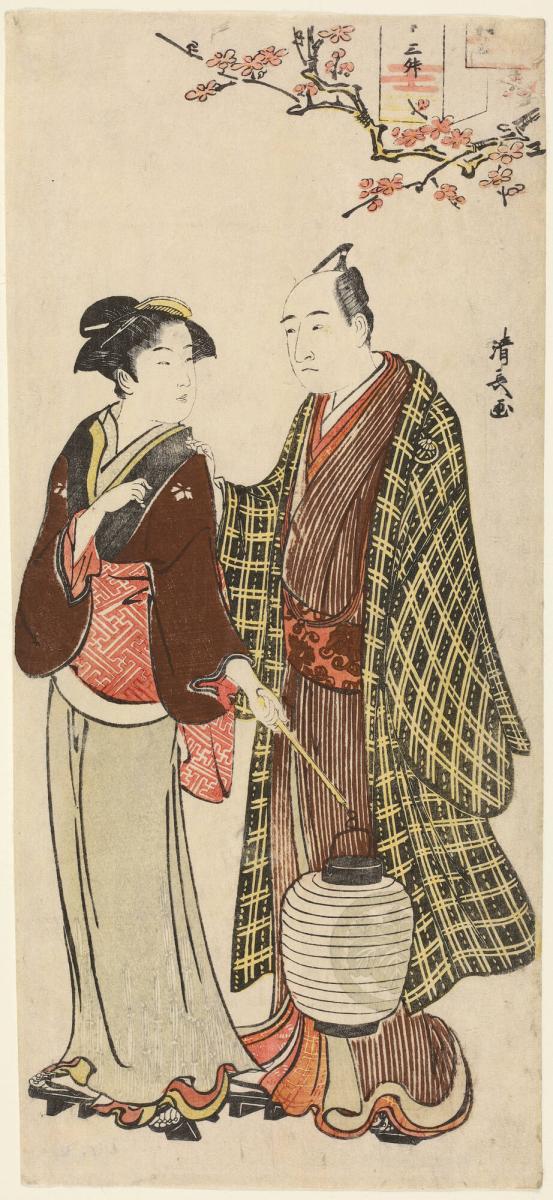 The Actor Sawamura Sōjūrō III and a Teahouse Waitress with a Lantern, from an untitled series of at least 12 portraits of actors off stage
