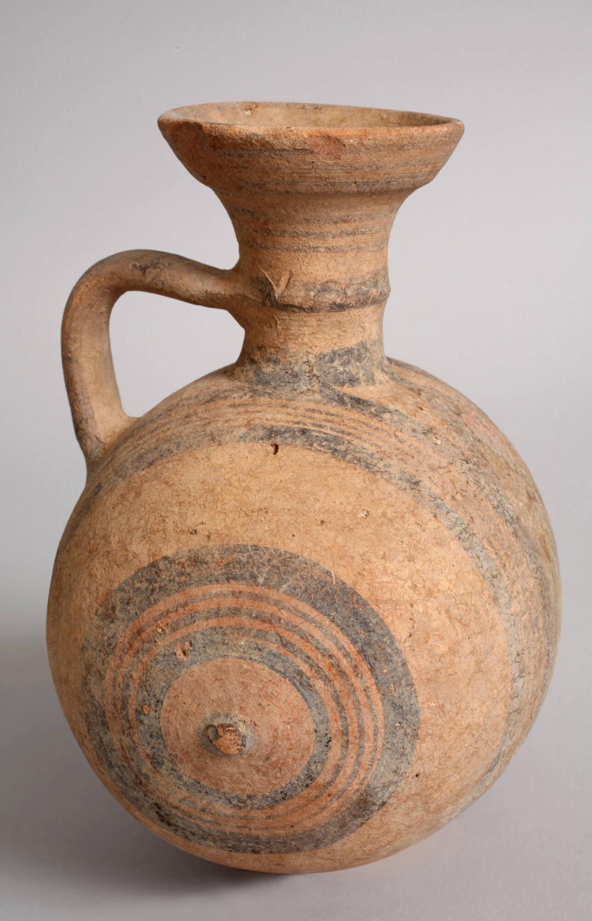 White Painted Ware Jug in String-Hole Style with Lattice Bands